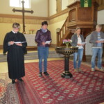 Am 5. Juni 2016 fand an Stelle des regulären Gottesdienstes am Sonntag morgen ein Wandelgottesdienst statt. Die Gemeinde folgte als Gruppe dem Pfarrer, der an ausgewählten Stationen inner- und außerhab der Kirche Interessantes zu berichten wußte.